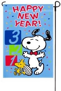 Cacahuetes feliz año nuevo jardín Bandera 12 "X 18" Snoopy saltando 60949: Amazon.es: Jardín